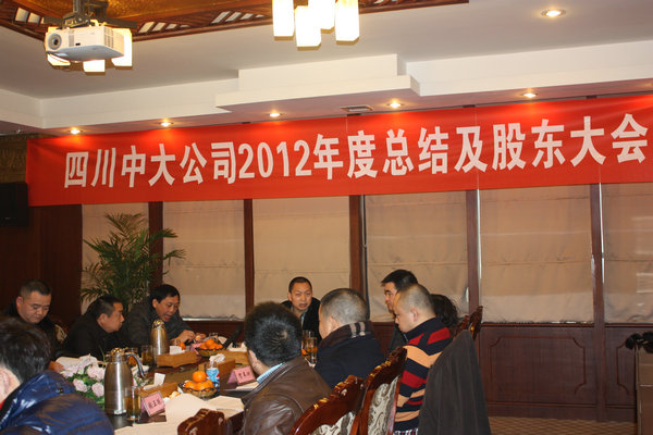 2013年1月14日,集团公司2012年股东大会在成都召开,董事长冯世斌主持大会,公司董事、股东代表参加了会议。 大会上,冯世斌代表集团公司对股东们报告了2012年公司运营情况,详细分析了全年各项工作,汇报了各分公司经营情况,